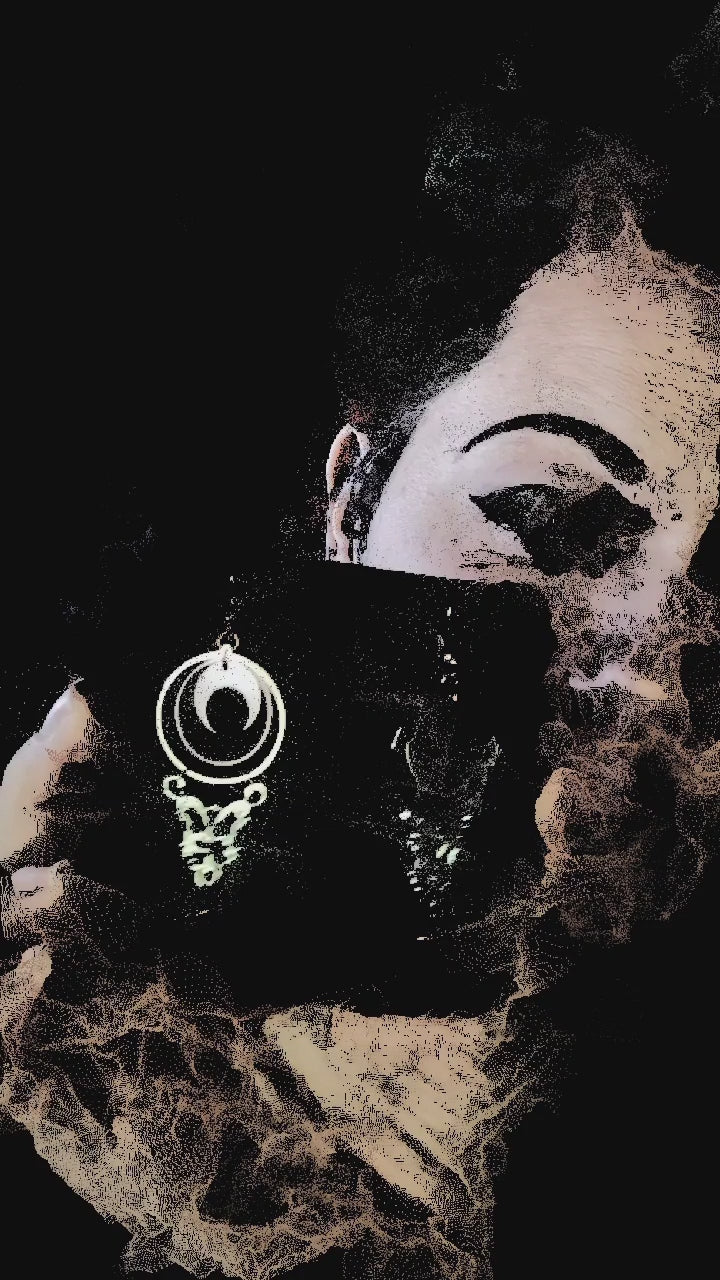 - Son croissant doré, suspendu au centre d'une structure argentée ornementée, symbolise la dualité, l'équilibre entre la clarté et la nuit intérieure.