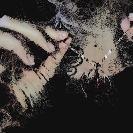 - Suspendue entre les deux, une goutte rouge ardente pulse comme un coeur vivant, une flamme contenue.