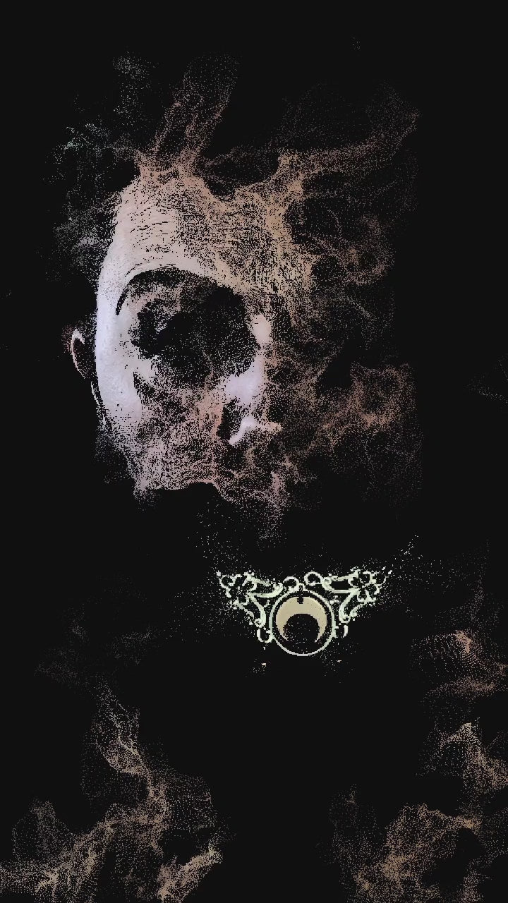- Son croissant doré, suspendu au centre d'une structure argentée ornementée, symbolise la dualité, l'équilibre entre la clarté et la nuit intérieure.